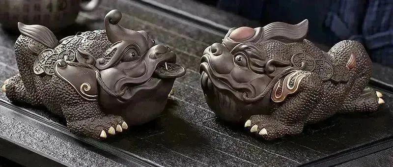 茶宠,顾名思义就是茶水滋养的宠物或是饮茶品茗时把玩之物,多为紫砂、树脂,或者陶土制作而成,形象多为金蟾、金猪、貔貅。