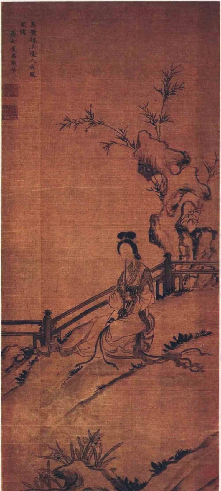 《吹萧仕女图》 绢本水墨纵63.3厘米横24.4厘米南京博物院藏