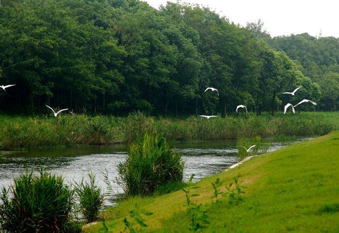 上海海湾国家森林公园国家4A级景区,1999年开始植树造林,2009年试开园,是上海最大的人工混交林公园。公园占地1.6万亩,年均接待客流量70万人次,是上海唯一一家国营企业运营的郊野公园。它曾经是一片滩涂,如今却是上海最大的人工混交林公园。它的负氧离子浓度是市区办公楼的15倍,被称作上海“最大的人工绿肺”,以花卉为特色的三大节庆闻名遐迩。[14]