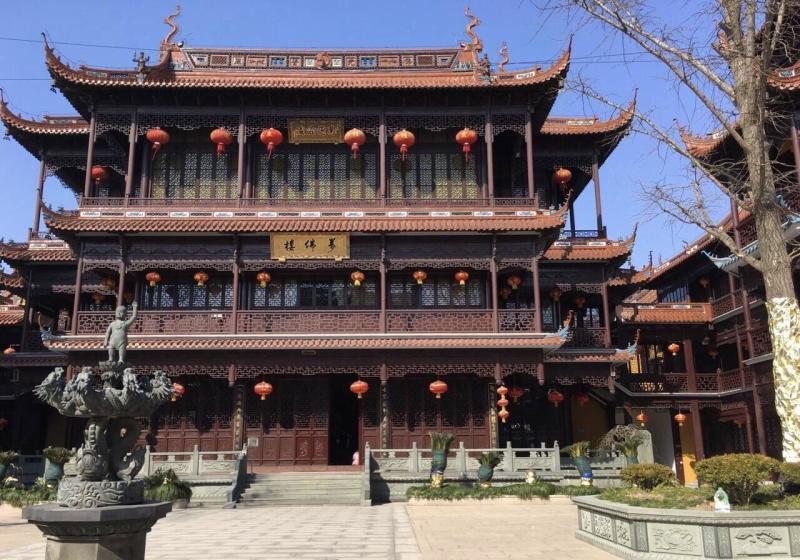 万佛阁位于奉城镇,始建于明代,已有600多年历史。万佛阁的建筑亦有特色,依城傍水,曾有据堞面山枕流之称;尤其后法堂楼阁建于古城墙之上,别具一格。大殿的钳状套式梁木结构,镶接严密,浑然一体,堪称古建筑一绝。1989年6月经奉贤县人民政府批准恢复开放。十几年来,在上海市佛教协会支持下和新量师太的主持下,重修大殿山门、法堂楼阁,新建头门回廊。佛像金身,宝鼎壮观。明真禅法师为头门、大殿题名。[13]