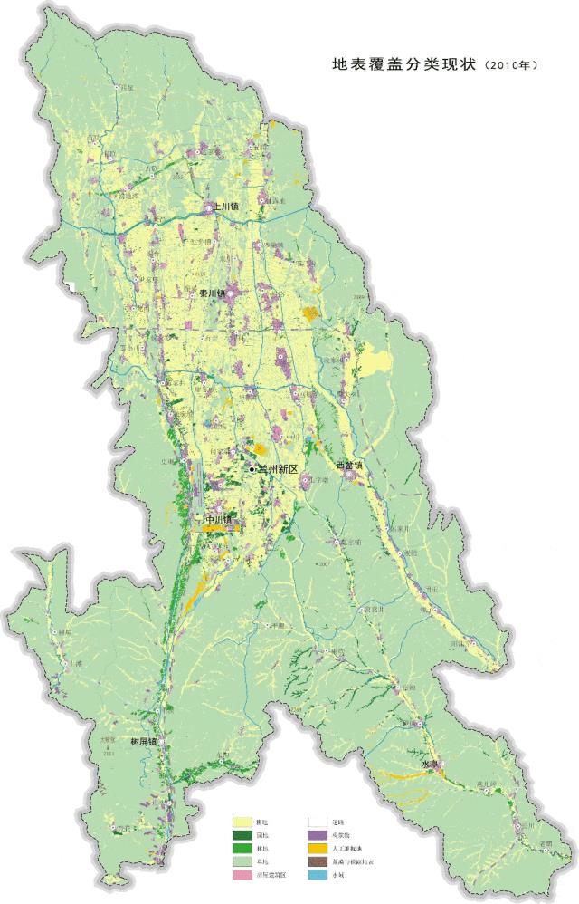 2010年至2017年兰州新区地表覆盖分类年度监测数据显示,2010年至2017年间,新区范围内耕地、低覆盖草地等主要自然地表类型呈逐年减少的趋势,而房屋建筑(区)、道路、构筑物、人工堆掘地等人工地表类型则呈逐年增加的趋势。