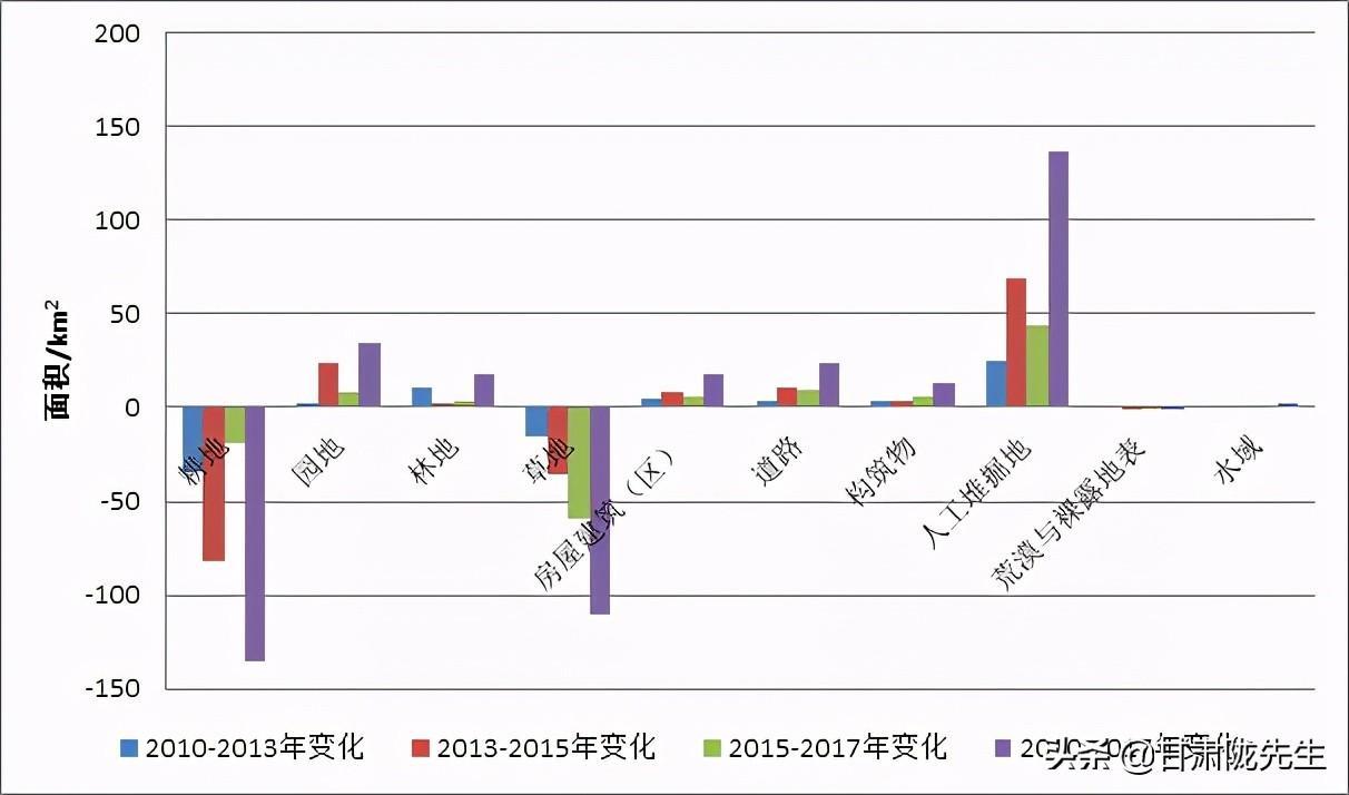 图2 2010年至2017年兰州新区地表覆盖分类面积变化量统计图