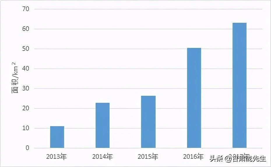 2010年至2017年间,建成区面积净增长74.5km2,年均增长率为62.41%,整体呈向东北方面扩张趋势。