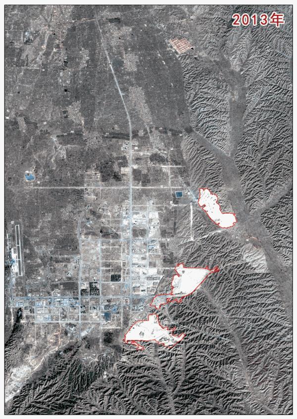 兰州新区在开发建设中,通过实施低丘缓坡沟壑等未利用地开发,采取“平山造地”方式,在建成区东侧造出了大量的可建设用地,实现了不占耕地或少占耕地的目的。经监测与统计,截至2017年6月,兰州新区“平山造地”总面积达63km2,2013年至2017年之间年均增长率为54.7%。在所平整的土地上,已基本完成道路网的布设,部分区域已实现产业项目的入驻,如职教园区、东南片区。
