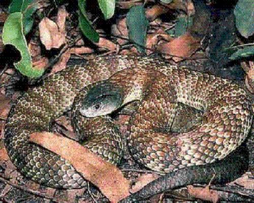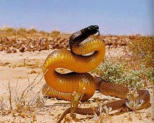 黑虎蛇,其毒性能跻身世界最强烈的蛇毒之列。体长约1.2公尺。栖息于沙丘、海滩、草丛等地,以两栖类、鸟类和小哺乳动物为食,胎生。遇到一定不要激怒它,否则你可能等不到急救人员就被毒死。