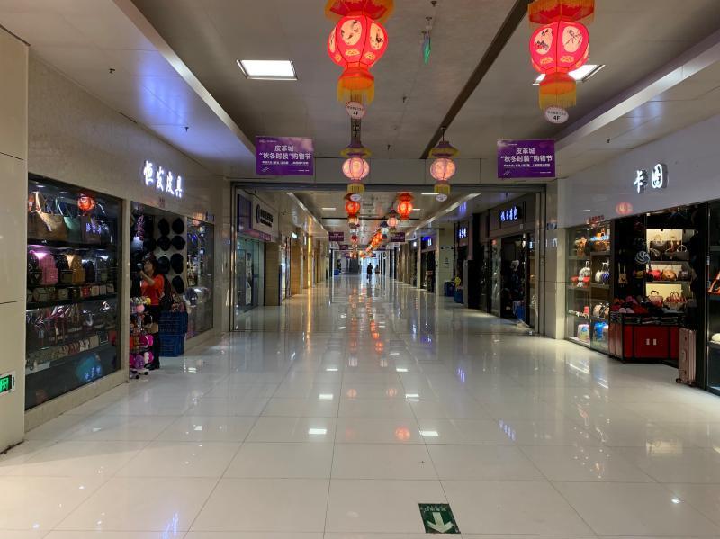 “现在我的生意是真的不行了!”刘娟坐在柜台前,重复点了两遍手里的钞票。“今天算是不错的了,不过也就这么800多元的流水。”刘娟把钱摔进抽屉里,掏出手机看了眼,补上一句,“算上支付宝里还有200多元,好歹终于过千了。”语气颇为无奈。17时,是皮革城里下班的时间,有店员打趣,说这时可能是商场里最热闹的时间段。下班铃声用的是悠扬的曲子《回家》,人们听到音乐准点下班,空荡荡的走道里突然热闹一阵,又迅速地冷清下去。人群行色匆匆,四散消失在停车场中。