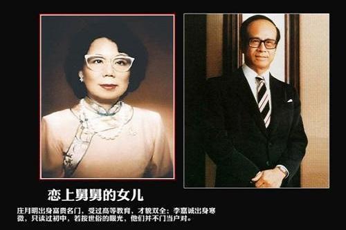 庄月明的父亲,是李嘉诚的舅舅也是李嘉诚的老丈人。李嘉诚小时候穷到吃不起饭,是靠在舅舅家的钟表店打工,才逐渐有了积蓄。后来和表妹两情相悦,当时舅舅十分反对两人的婚事,毕竟当时的庄月明家庭条件出色,完全可以找到一个比李嘉诚更优秀的男人。
