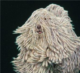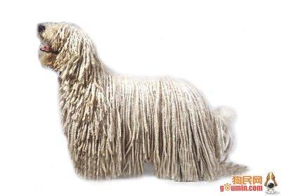 可蒙犬(Komondor),又称克蒙多犬,来自匈牙利的普西塔地区,浑身白色,毛发呈绳索状垂直悬挂,垂直生长4年可长到地面。因其奔跑状态下像一个移动的拖把,俗称“拖把犬”。