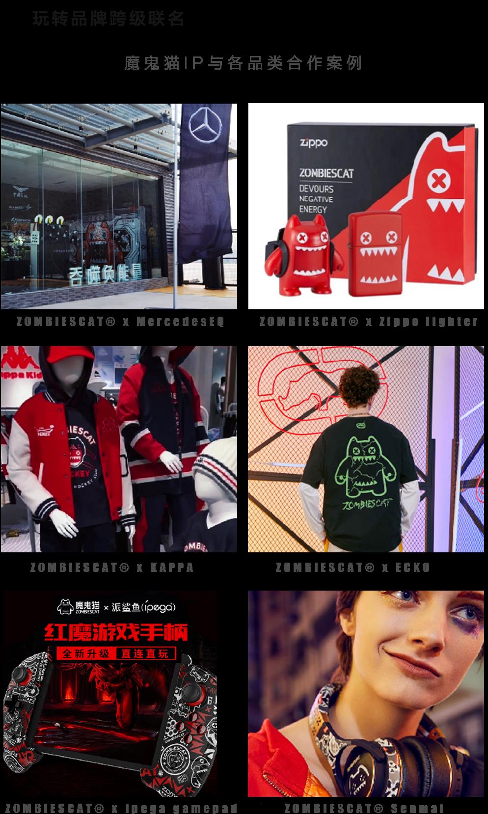 魔鬼猫目前已商业IP授权百余品类,涵盖服饰、数码3C类、家居类、箱包类、茶饮、生活快消品、玩偶类等品类。[魔鬼猫已IP授权合作的部分品牌:华为手机、5100矿泉水、倍轻松按摩仪、娃哈哈、百得火机、来电共享充电宝、高柏诗美妆、森麦耳机、壹基金、佳兆业、格美集团、香港太興、Kappa(意大利)、Dell(美国)、Zippo(美国)、ECKO(美国)……