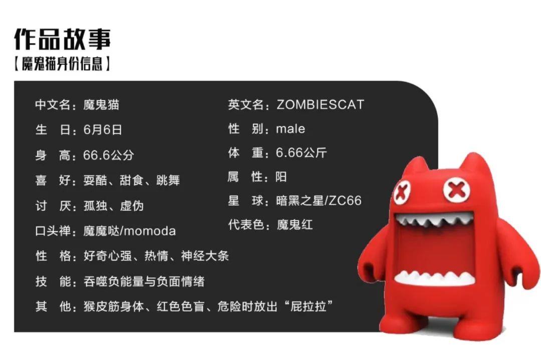 魔鬼猫IP介绍:魔⻤猫是来⾃未来⼀个编号为ZC66星球的外星⼈。在2666年被横⾏宇宙的僵⼫军团侵占了家乡,并感染上了僵毒;在逃离魔⽖的过程中,通过时间⿊洞穿梭到了现在的地球。因其外形上酷似地球的猫咪,所以被地球⼈称为魔⻤猫。他们族群天⽣患有ZC恐⾎症,所以虽然成为了僵⼫却不能吸⾎,转化为吞噬⼈类的负⾯能量和负⾯情绪。这也是为什么⼈类和他在⼀起会莫名变得乐观、积极、阳光的缘由,是⼈类的精神伙伴!