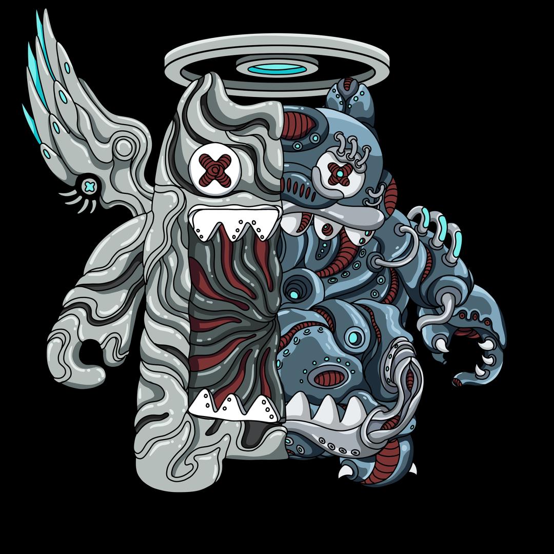 创作理念:该系列是魔鬼猫IP数字艺术藏品系列创作其一,是赛博、机械、魔幻、科幻、科技、等多元化元素的汇集之作,这些天马行空的想象力再结合WEB3与数字元宇宙的技术探索,令每一件作品都有自己独特的个性与含义,并成为虚拟世界唯一的身份识别,千变万化中又延续传递着“吞噬负能量”的IP价值观。