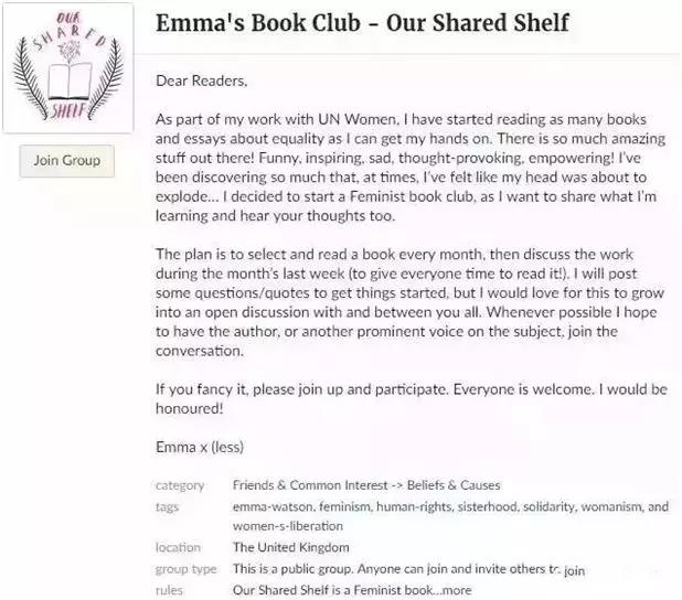 在读书俱乐部中,艾玛经常与全世界的成员,探讨书籍精华内容。
