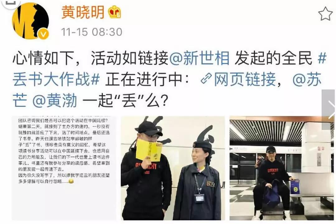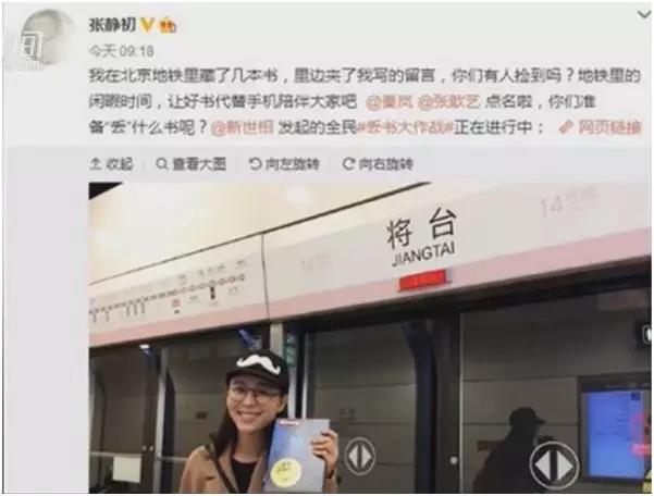 黄晓明、张静初、黄咚咚等明星,也加入其中,在地铁放上了自己喜爱的书。