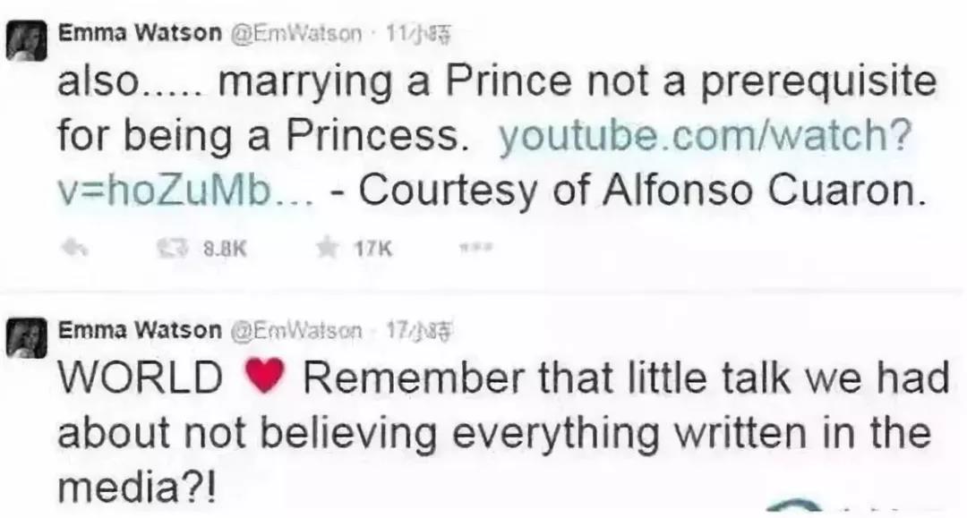 艾玛站了出来,一如当年传闻哈里王子,追求艾玛一样。