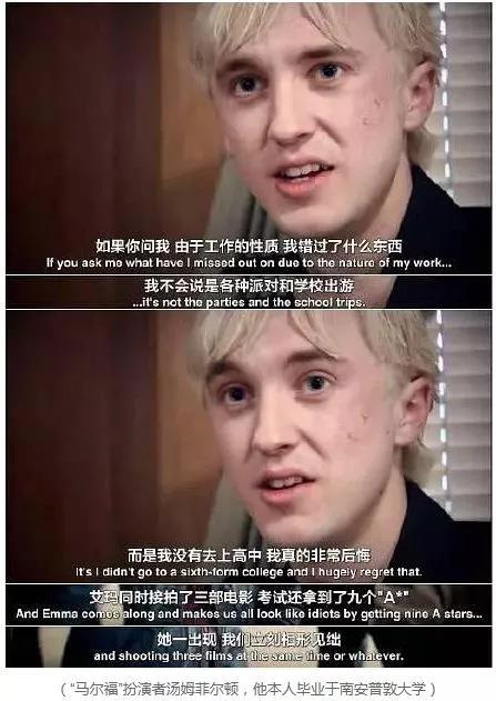 汤姆菲尔顿说:同为演员,我最敬佩的,就是艾玛。她拍电影同时,考试还能拿到九个“A”。