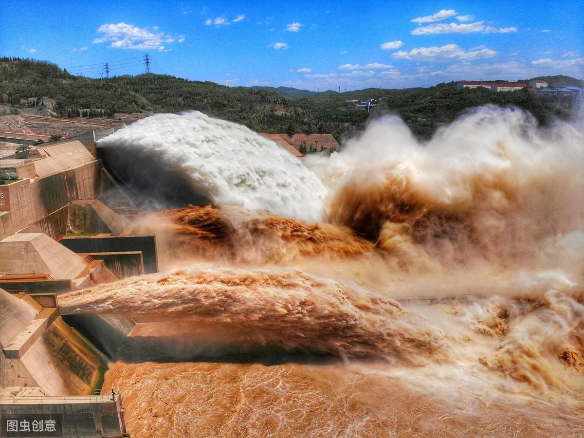 前面就是大坝的出水塔,每一年调水调沙就是在这个地方,如果是六七月份来的话是最壮观的,观瀑节会吸引很多游客来旅游的,可以感受到“黄河之水天上来,奔流到海不复回”的壮观场景。我们这次去看不到,不过看到了调水调沙的照片。