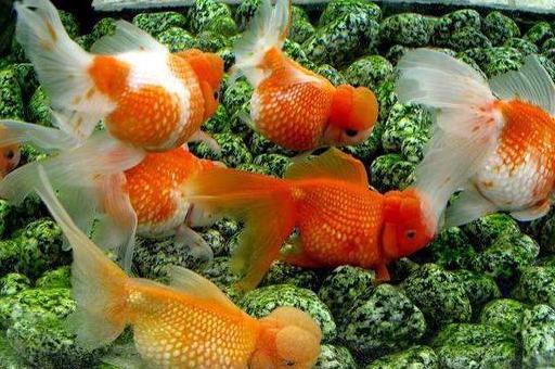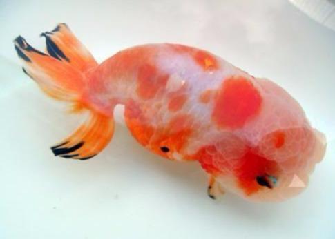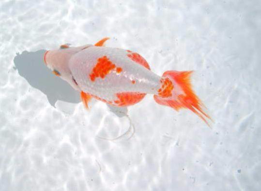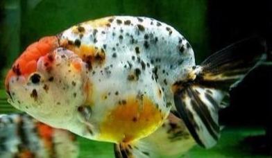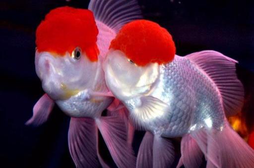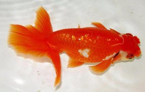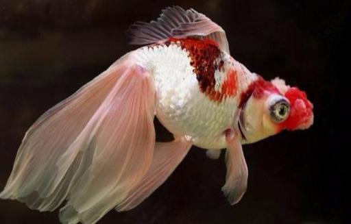 鹤顶红:头部有一点红的丹顶金鱼,身形和狮子头一样。