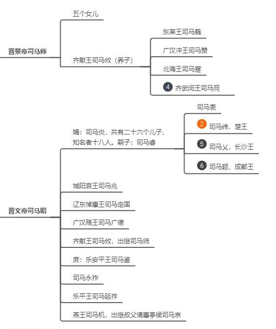 司马炎后宫万人,儿子26个,他立了嫡长子司马衷为太子,司马衷智商不够,此后的八王之乱,有3个是同父异母的亲兄弟,有2个爷爷辈,有3个堂兄弟,其中1个就是司马攸的儿子,人人都觉得自己应该当皇帝。