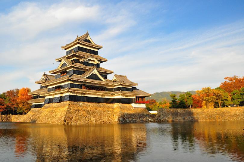 建于16世纪的松本城被认为是日本最著名的城堡之一。这是一座平地城堡,因为它不是建在山顶或河流之间,而是建在平原上。城堡的完整防御系统包括一个庞大的相互连接的墙壁、护城河和门楼。 在江户时代,这座城堡由代表6个不同大名家族的23位松本领主统治。在这个时期,这个城堡也因其黑色的墙壁和屋顶看起来像张开的翅膀而被称为乌鸦城。