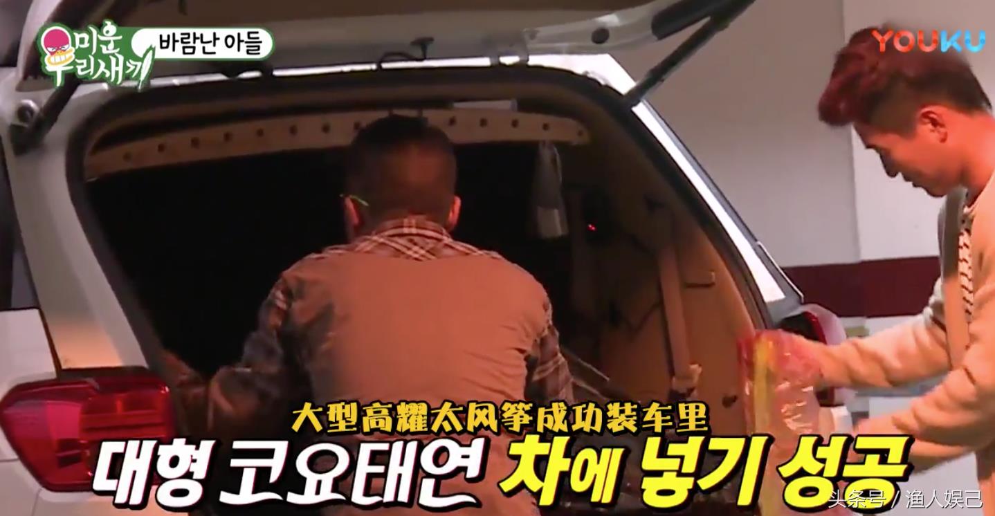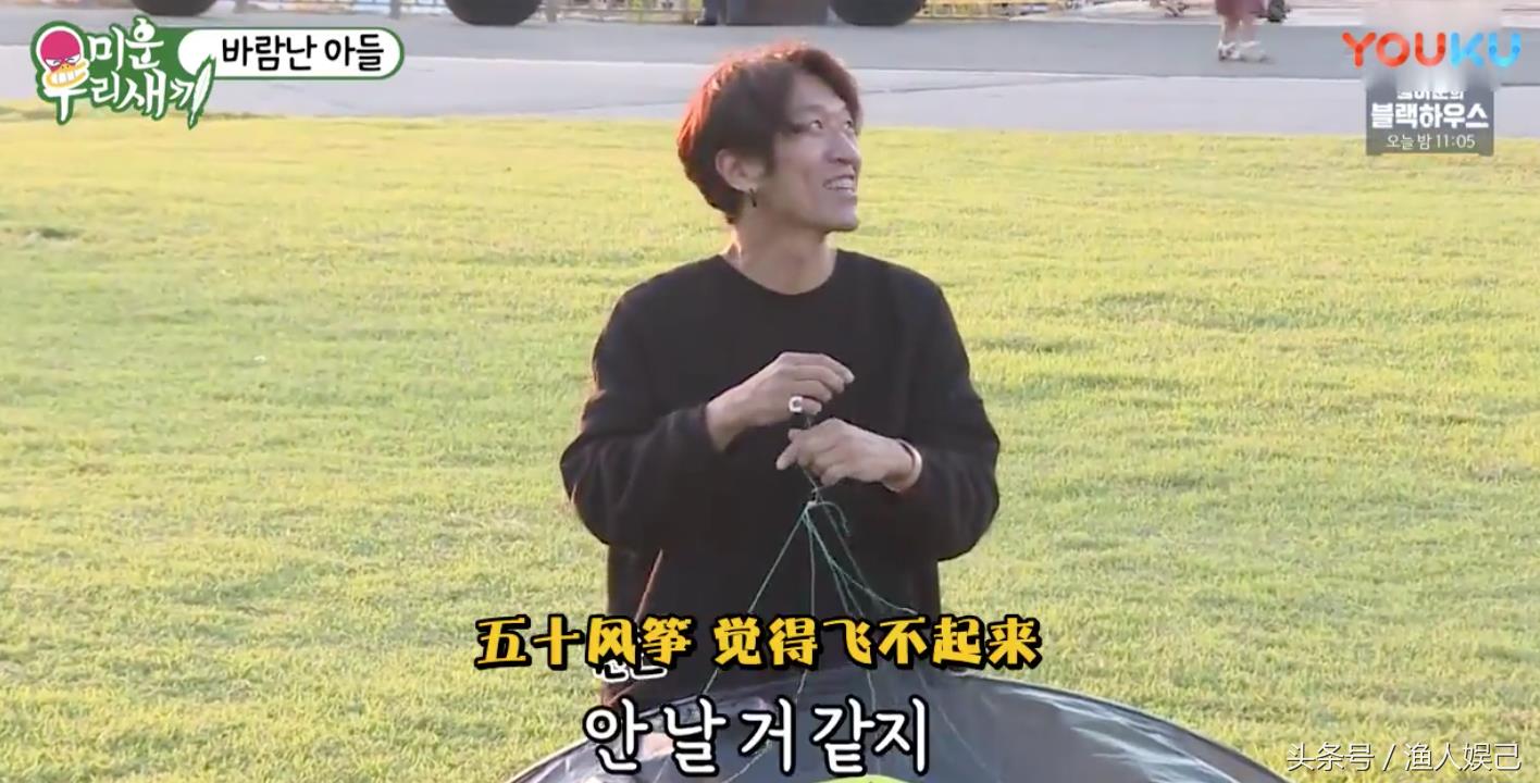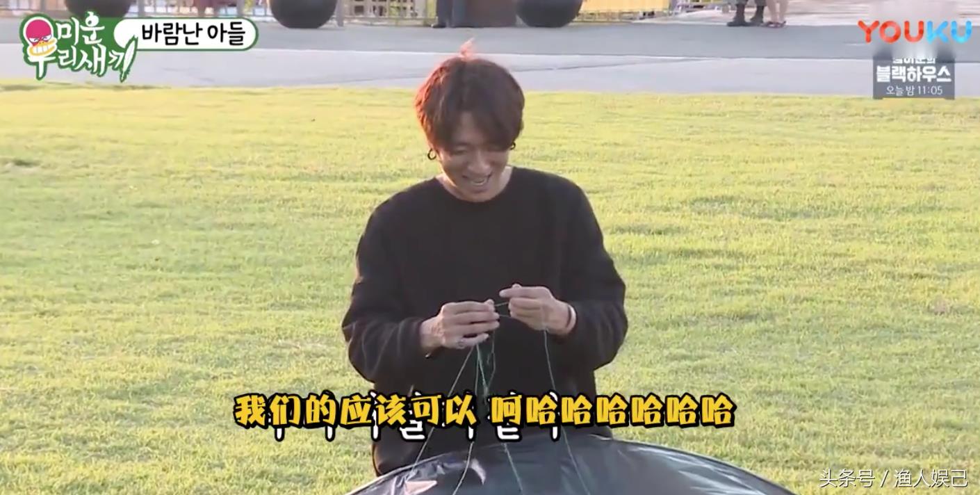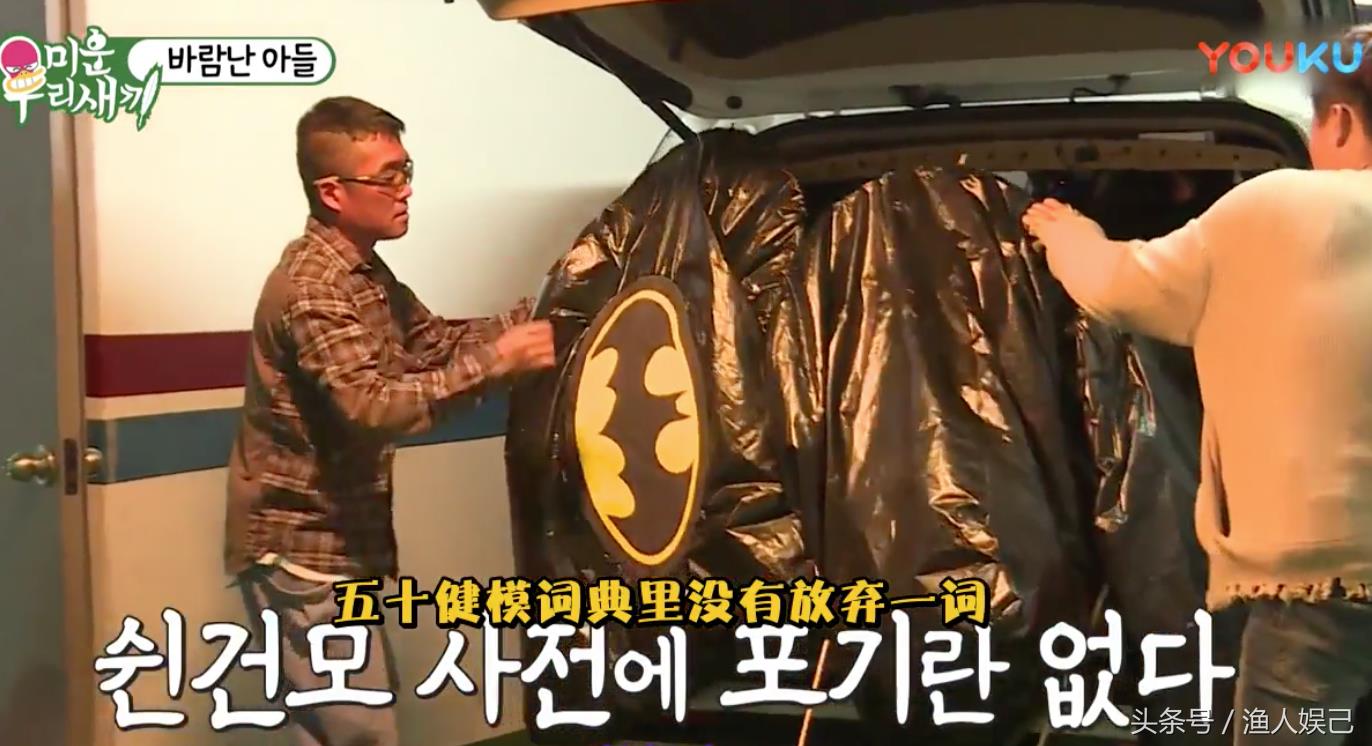 原来金健模是看风好,要做风筝去放,于是三人分成两组,金钟民和白佳做高耀太风筝,金健模做自己的蝙蝠侠风筝。