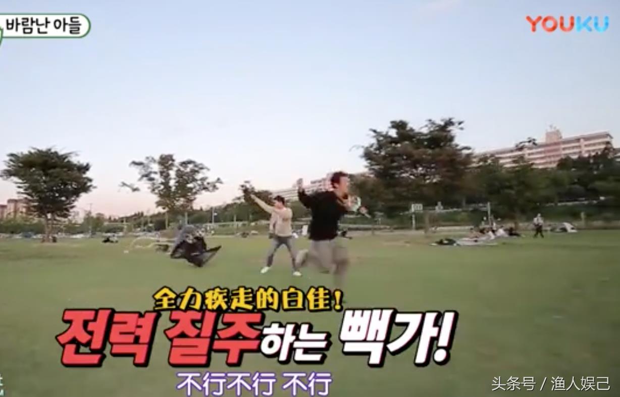 结果,放风筝时,因为风筝太大,金钟民就说白佳你跑快点,风筝才能飞起来,于是白佳拉着线就开跑,可才跑了几米出去,风筝线就断了,白佳却浑身不知,穿着后面开洞的fashion阔腿衣裤,卯足劲的跑,全然不顾后面金钟民大声叫喊,直到跑出一百多米远,回头才发现风筝早就断了,如此后知后觉,连金钟民都觉得荒唐,白佳真是呆萌……