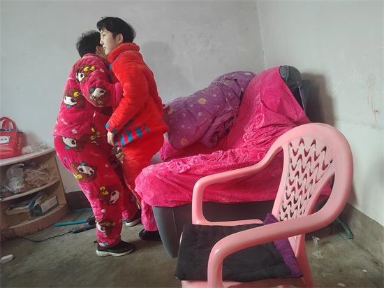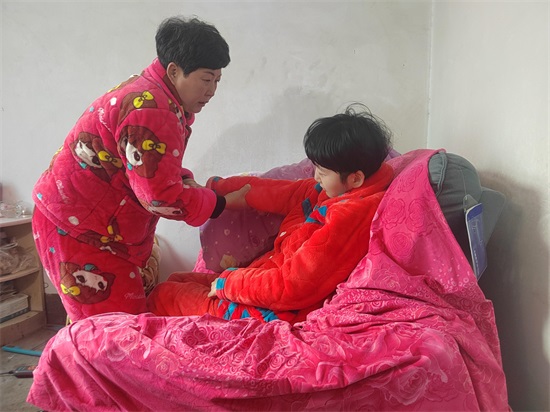 “坐会吧!躺时间长腰疼。”刘素云边说边将两手插在女儿肩膀两侧腋下,吃力地将体重不到50公斤的女儿抱起,缓缓地将其放到床边一带靠背的椅子上,顺手一拉窗帘,温暖的阳光一下子洒进来。