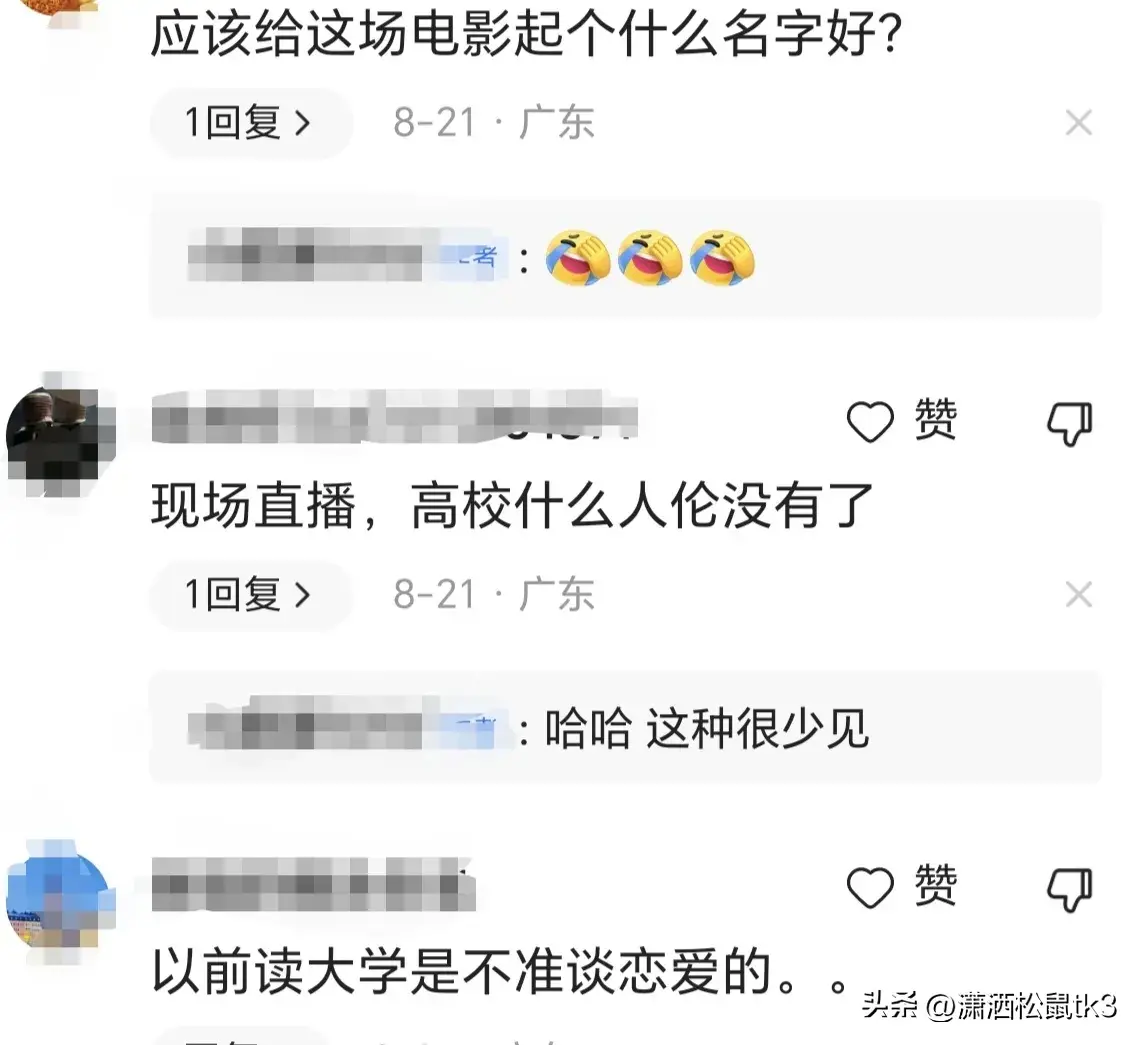 “大学生谈恋爱不反对,谈恋爱也可以积累情感经验,但是在这种场合做不雅行为有点过分”