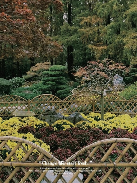 除了树木,花草的分布也不容小觑,弯曲的小道周围被一团团的花簇簇拥着,松柏被修建得整整齐齐。每走一步都会发现一处新的景观,各有不同,又各有特色。有一种移步换景的感觉。