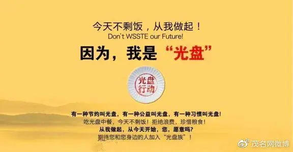 力挺“光盘行动”,反对奢侈浪费,尊重农(牧)民汗水, 截断“地沟油”产生,解决民众饮食安全,给力强国强军。国民们积极行动起来,监督舌尖上的浪费,响应“光盘行动”,共同促进民族素质的进位与提高!