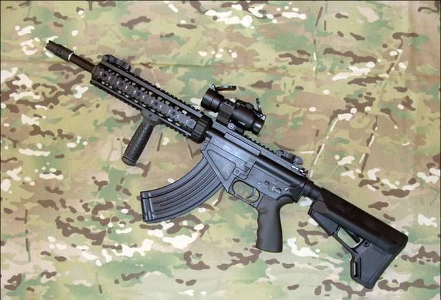该枪可以单连发、三连发或连发射击。枪身总长度为826毫米,但枪托缩回后为784毫米。手枪弹壳采用工程塑料结构,顶部有战术安装导轨。有一些瞄准镜和战术配件,不过SR47步枪的数量很少,在西方民用市场上也很罕见,但却是抢手货。