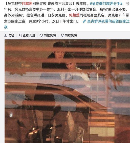 何超莲的分手宣言也看得出来受伤比较深,很快记者也拍到,喝醉的何超莲被吴克群送回家,记者本来以为两人有望复合,结果吴克群这边说要专注事业,不想耽误对方。