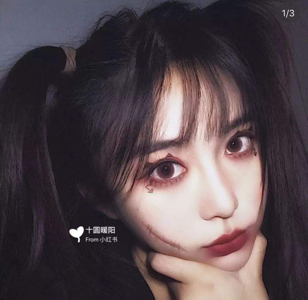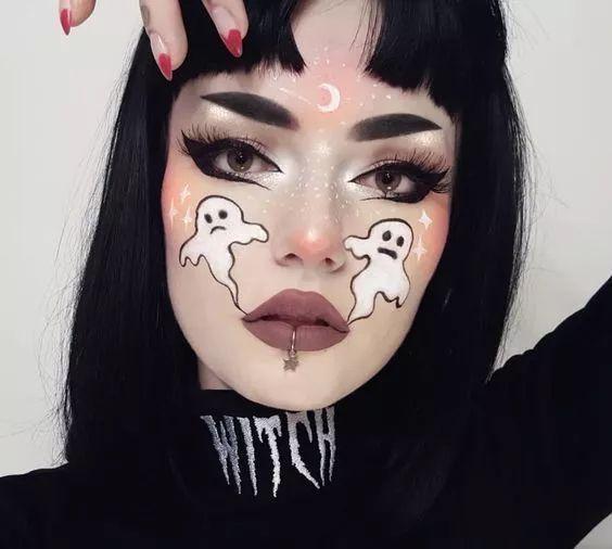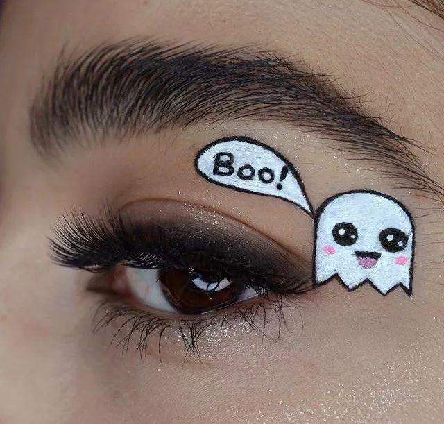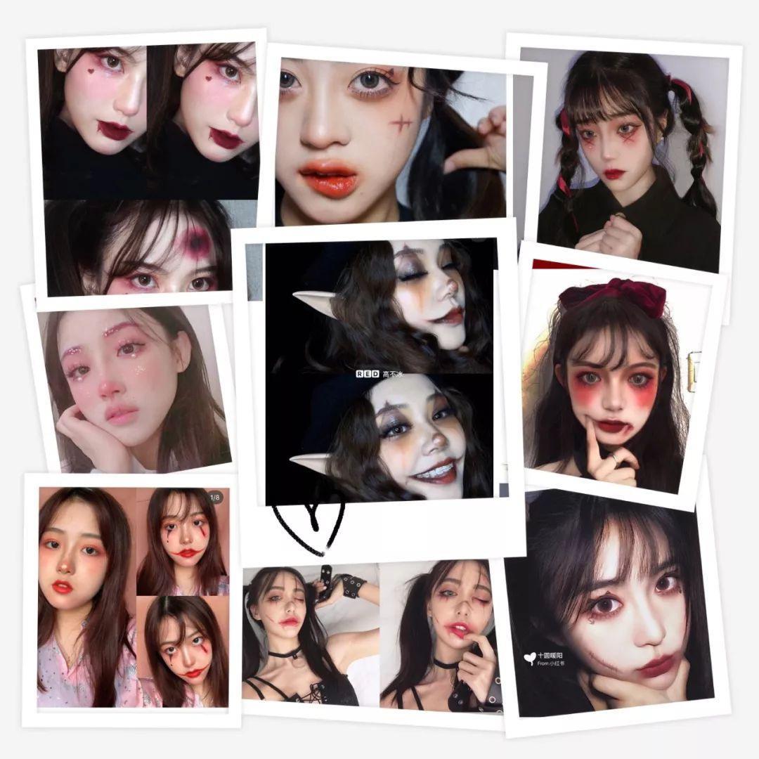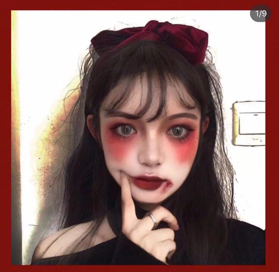 首先要给大家安利的当然是自带萌点的幽灵妆,这款模板比较考验化妆技术,目测化妆时间起码2小时以上,不管是打底、眼妆还是高光和腮红,都要拿捏到位。
