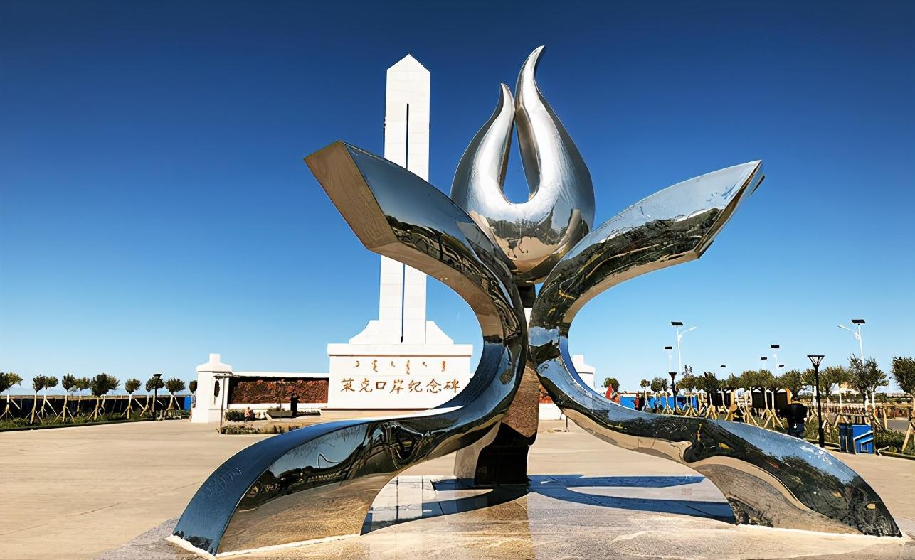 界碑广场的文化雕塑体现了“守望相助”中蒙友好关系的发展理念。雕塑形象如一团兴旺之火,火焰部分犹如佛手在护佑口岸人民健康平安。雕塑三个脚如同飘逸的哈达,迎接两国四面八方的来客。雕塑高度309厘米,基础为三层30厘米石材台阶,总高为399厘米,3与9是蒙古族吉祥数字,寓意天地人之和谐与长久。