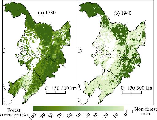 不同时期东北的森林覆盖率变化(仅供参考)