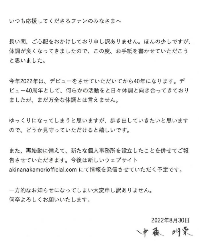 一天前,57岁的中森明菜宣布全面复出,并成立了新的个人事务所,还破天荒地注册了自己的社交账号。