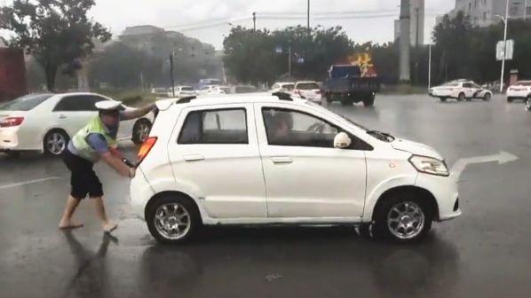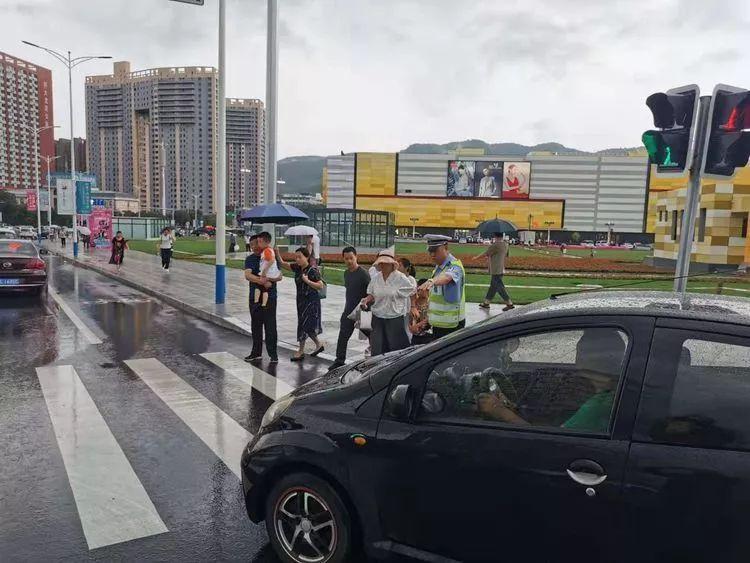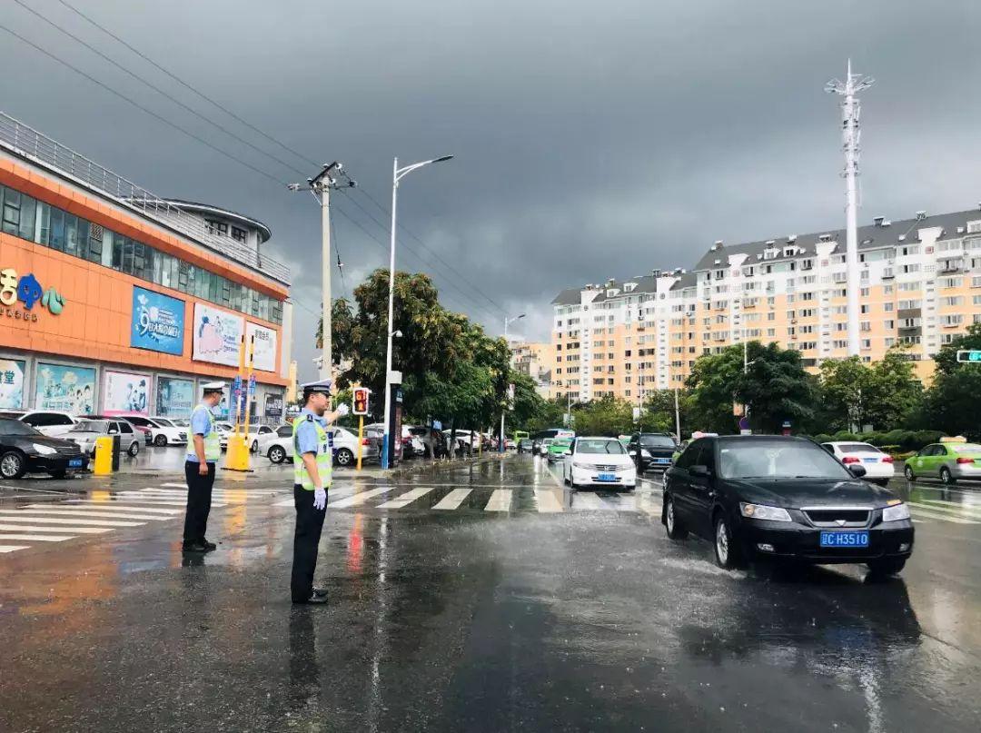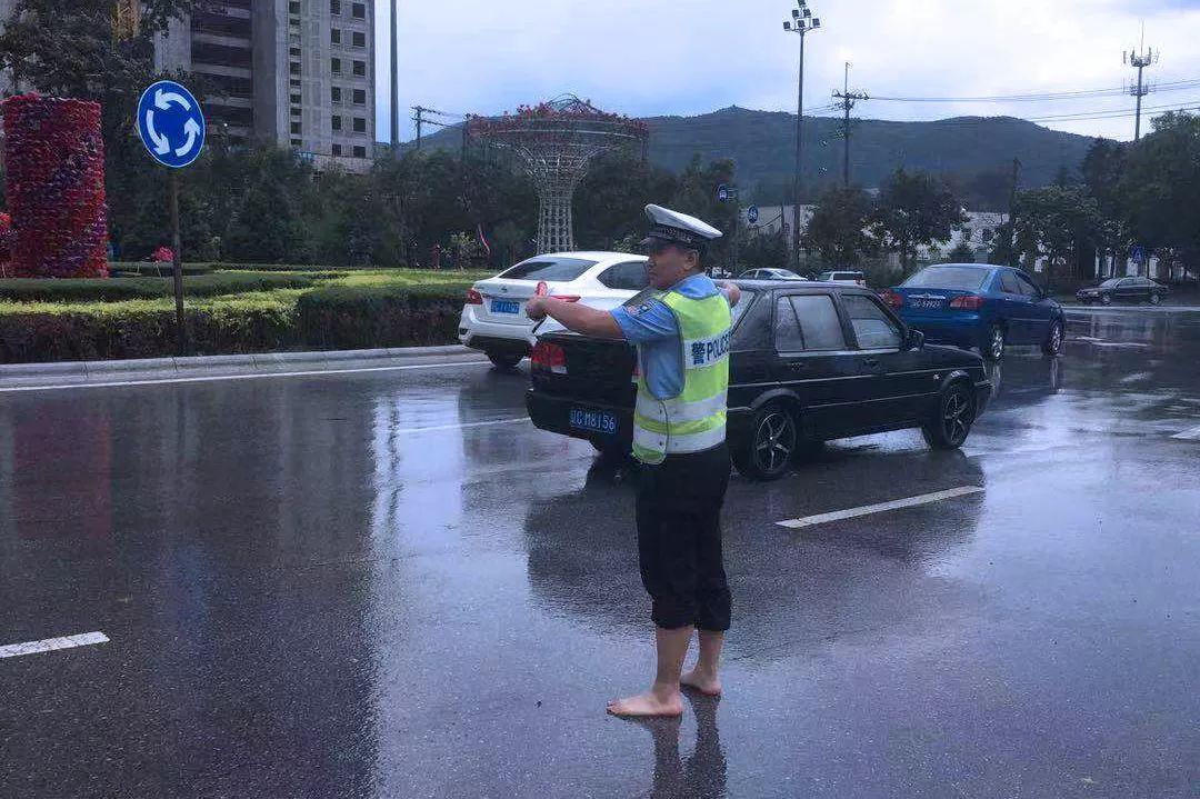 全体执勤民警冒着大雨,全身湿透,甚至坚持赤脚站在雨中疏导交通,帮助群众推离故障车辆6台,人工疏导交通1355次,受到群众充分肯定和一致好评。