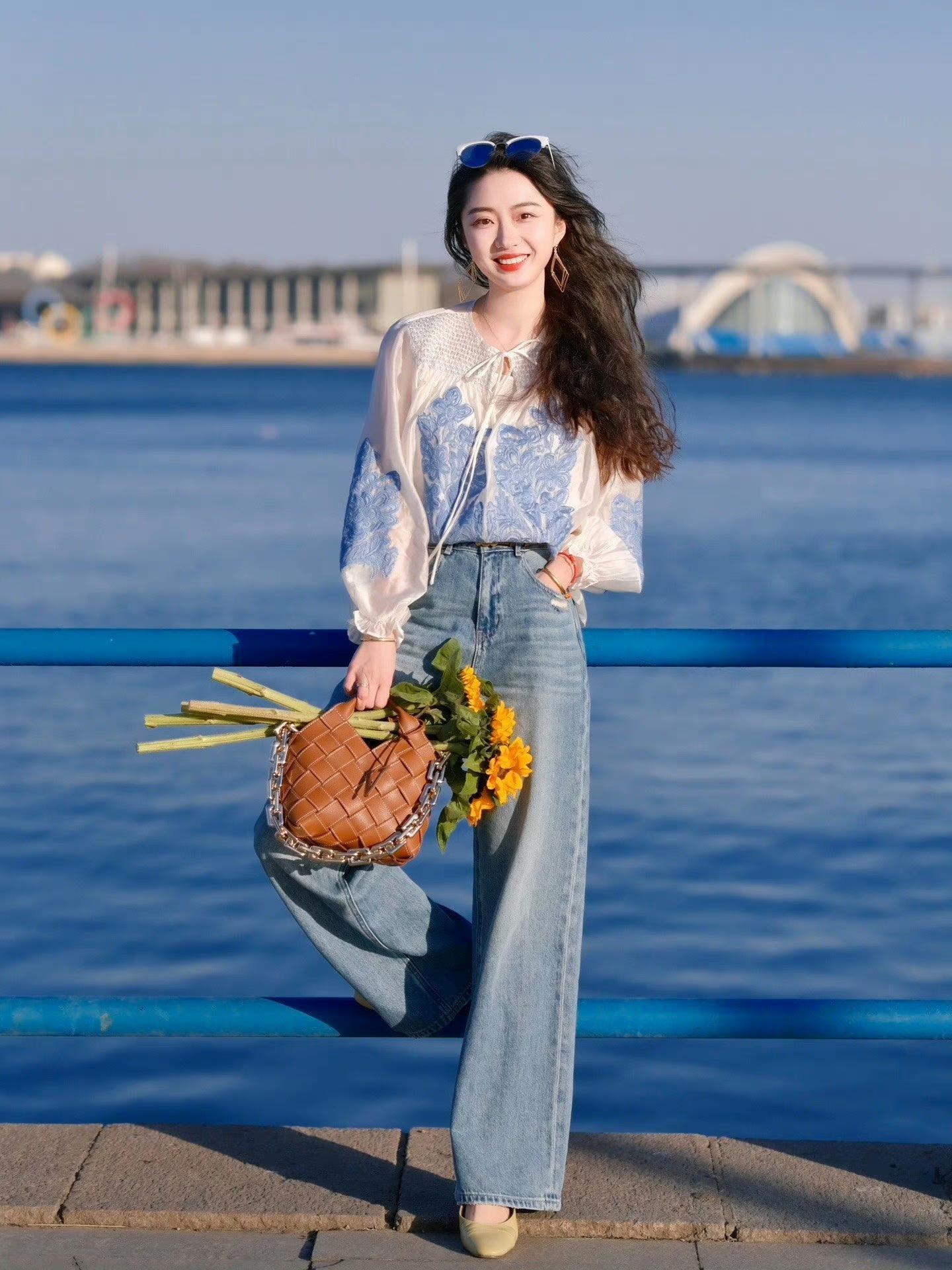 在户外的场景,风吹头发的时候,可以顺势做手撩头发的姿势,这个姿势能很好地展现女生的魅力,姿势也不会显得刻意。