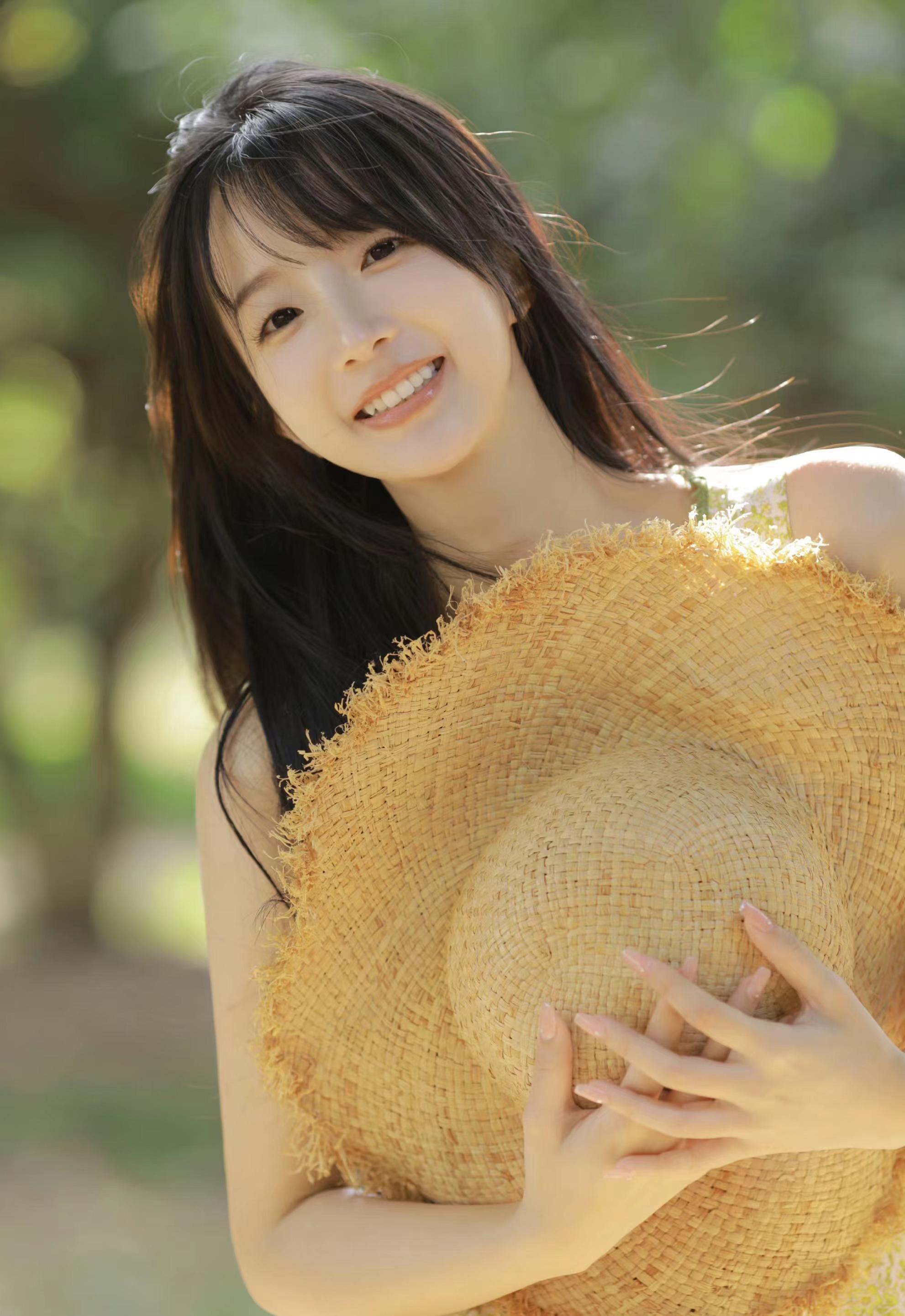 帽子是拍人像摄影时基本都会准备的道具,以半身面对镜头,手拿帽子挡住自己的上半身,这样能避免拍到粗手臂、小肚腩等,实现扬长避短拍美美的照片。
