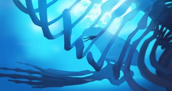 礁岩阶段(Reef stage):当残余鲸落当中的有机物质被消耗殆尽后,鲸骨的矿物遗骸就会作为礁岩成为生物们的聚居地。