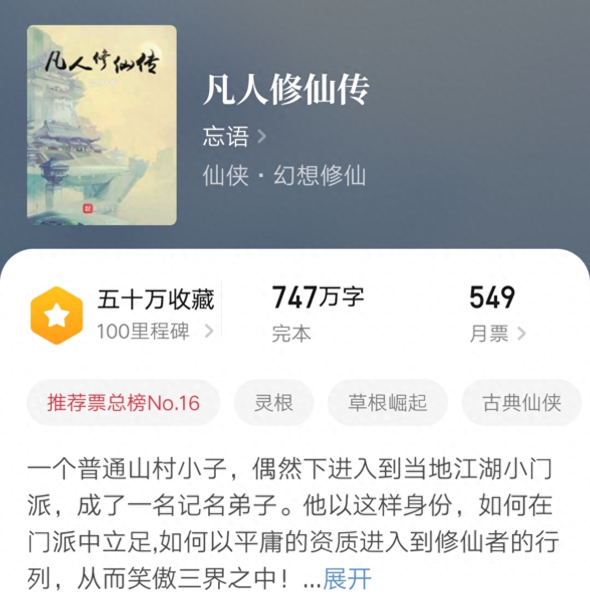 如今小说已经连载了有二百六十万字,相比忘语之前的作品,这些字数还不算多,但是质量又比《凡人》之后的作品强。