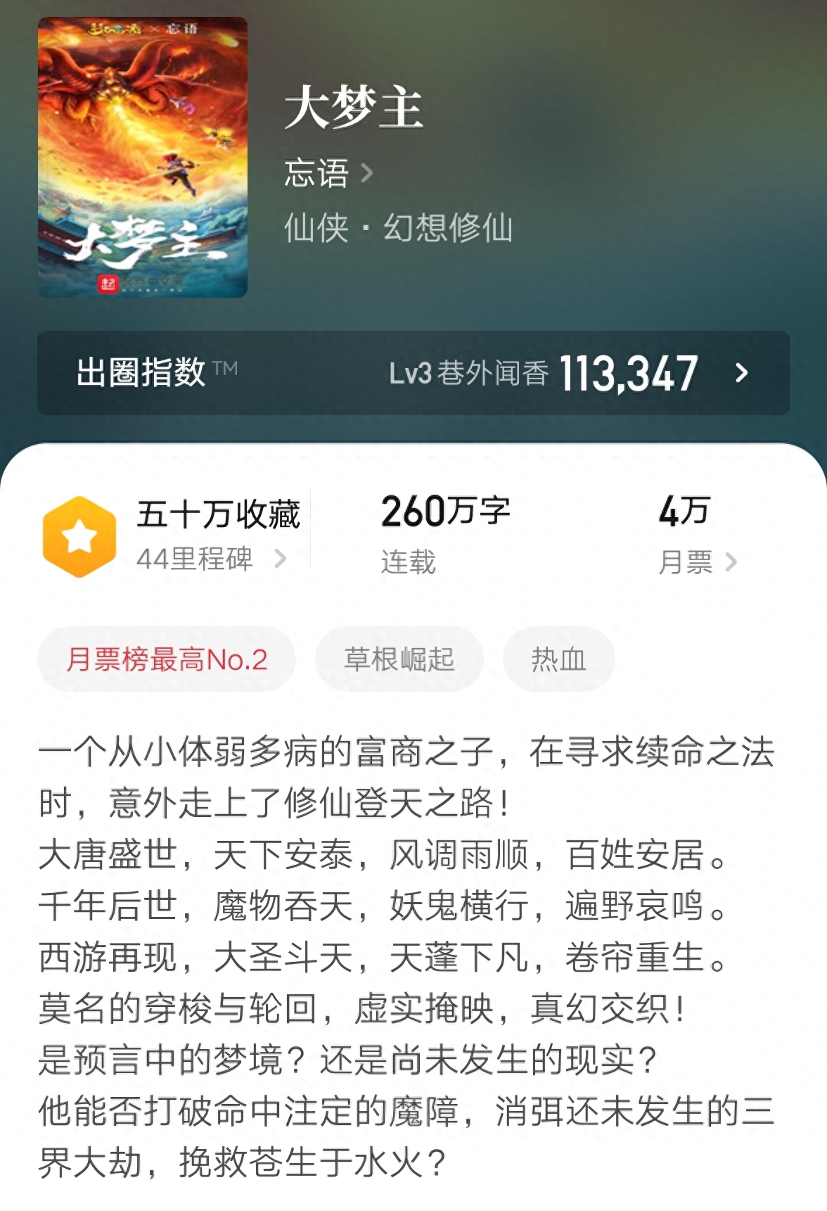 走出凡人的影子,忘语终于再度在仙侠领域打开了局面。《大梦主》出道便以惊艳的开头设定获得了读者的首肯。