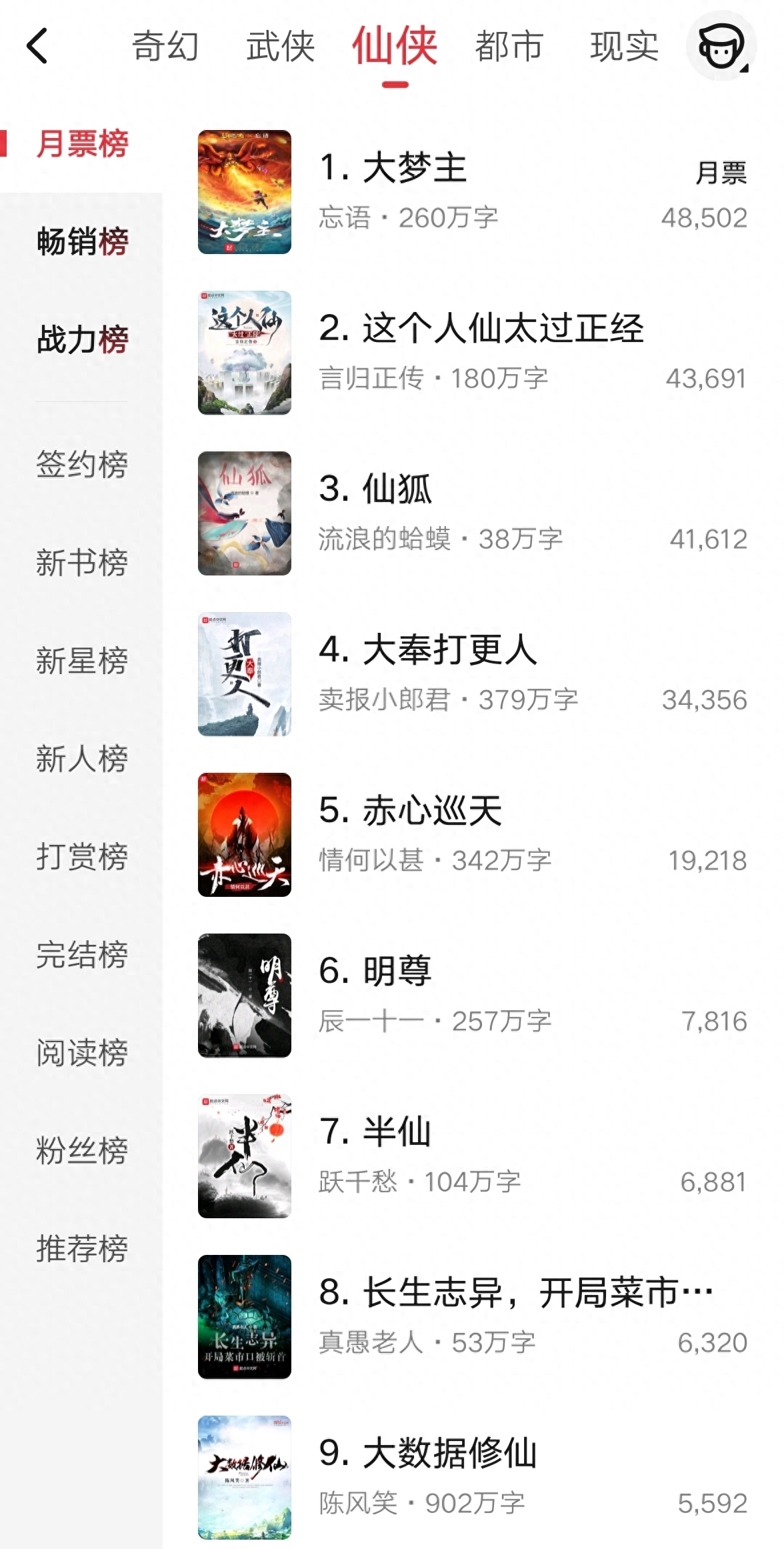 纵观起点仙侠频道月票榜,如今的《大梦主》虽然处在榜首之位,但是仍然无法取代已经完结的《大奉打更人》的位置问鼎畅销榜第一。也难怪有书友感叹:凡人之后再无忘语。