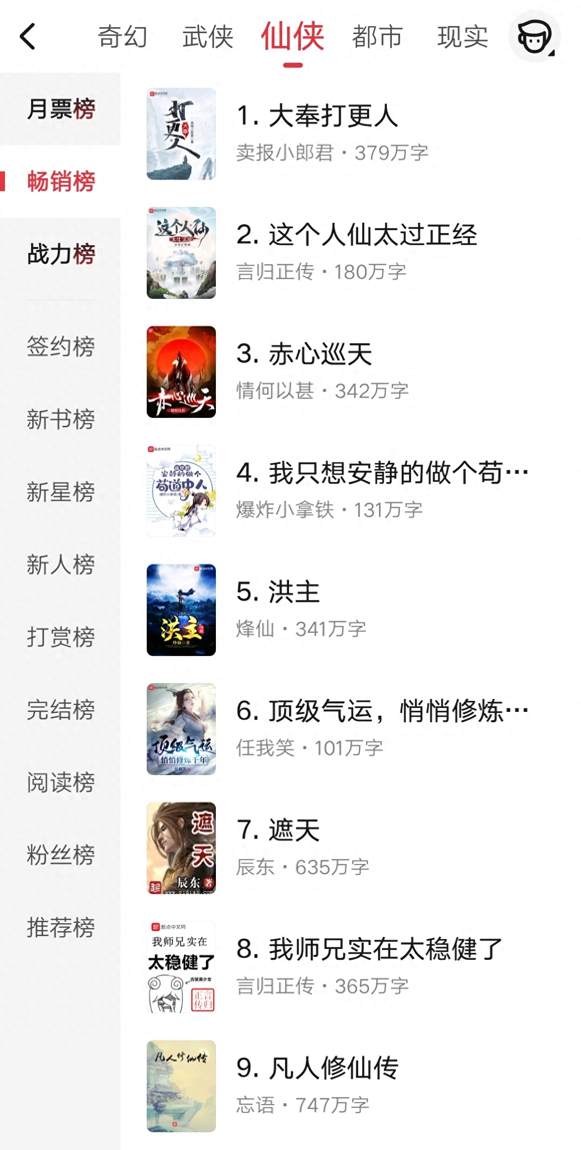 怎奈今年的起点仙侠频道,佳作频出,先是言归正传以《我师兄实在太稳健了》一书封神,又有《神秘复苏》《赤心巡天》逆袭上位,更有《大奉打更人》霸榜半年无法超越。