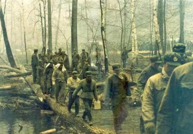 隔离带建成后,战士们还要时刻巡视,防止任何意外事件发生。在整场塔河保卫战中,战士们经常强行军几十公里,不断扑灭被风吹过隔离带的燃烧物。因为过度疲劳,经常有战士走着走着就睡着了。