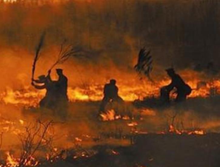 而当时的记录更加激动人心,为了给制造隔离带的战友争取时间。一个团的战士越过公路,迎头冲向大火,用一切工具尽可能地拖延大火前进的脚步。