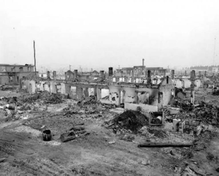更糟的是,由于风力不断增强,一些被点燃的布料与枯枝被吹进了当地储存木材的仓库中,大火开始在县城内蔓延。此时几千人的灭火队已经完全无法阻拦火势推进了。