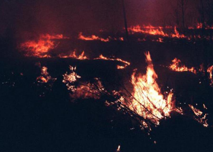 但不知道是因为疲劳还是天色已晚,参与灭火的人忽略了一些仍处于阴燃状态的火堆。