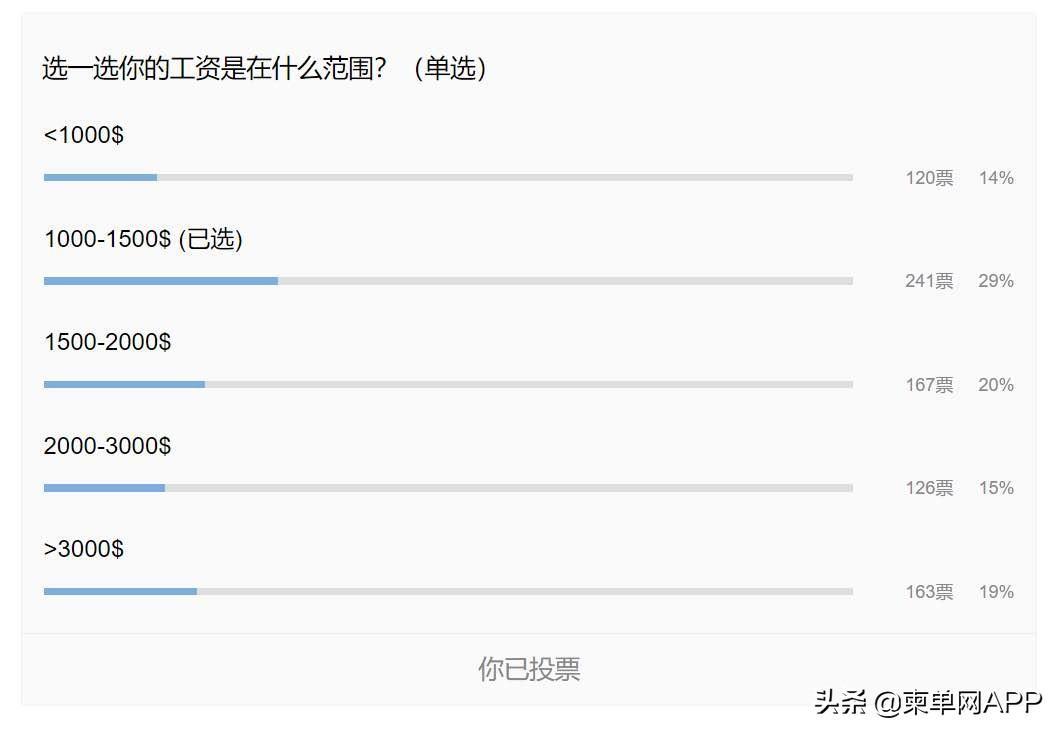 昨日,柬单网公众号发起了一项投票,截至今日上午,结果显示,有近30%的人工资水平在1000-1500$左右,20%的人工资大于3000$。