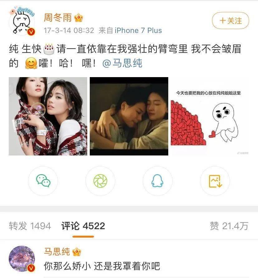 然而压死骆驼的最后一根稻草,还得从马思纯的生日微博说起,时间回到2021年,马思纯发布配文“我的女人们 ,陪我一起幸福”的生日微博。