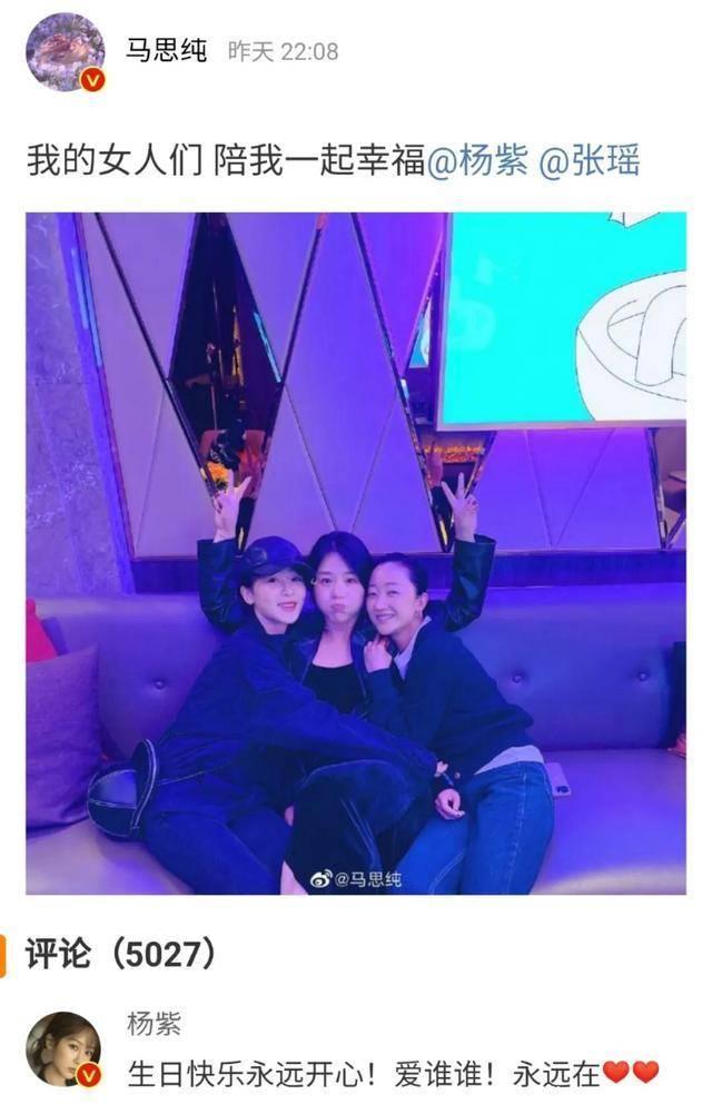 照片中出现了杨紫和张瑶,却唯独没有周冬雨的身影,杨紫发的庆生博, 马思纯也亲密地称呼她是自己的妹妹。
